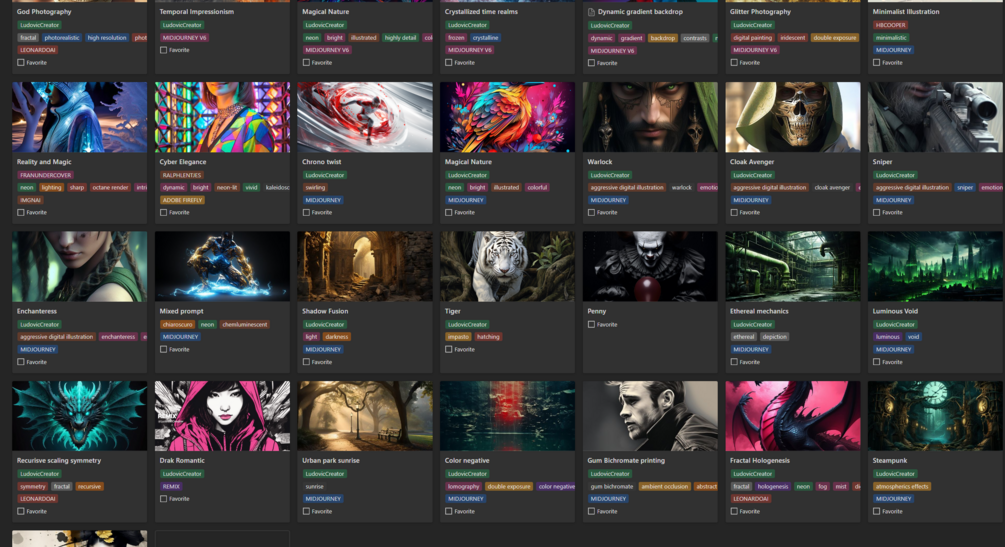 - Differents views ( Gallery, filtered by tools, tokens ), one view for your art and prompts .